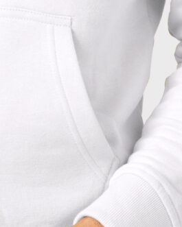 Felpa con cappuccio in tessuto leggero French Terry, doppia cucitura su collo, polsini e fondo con costine 1×1 polsini e fondo in lycra.